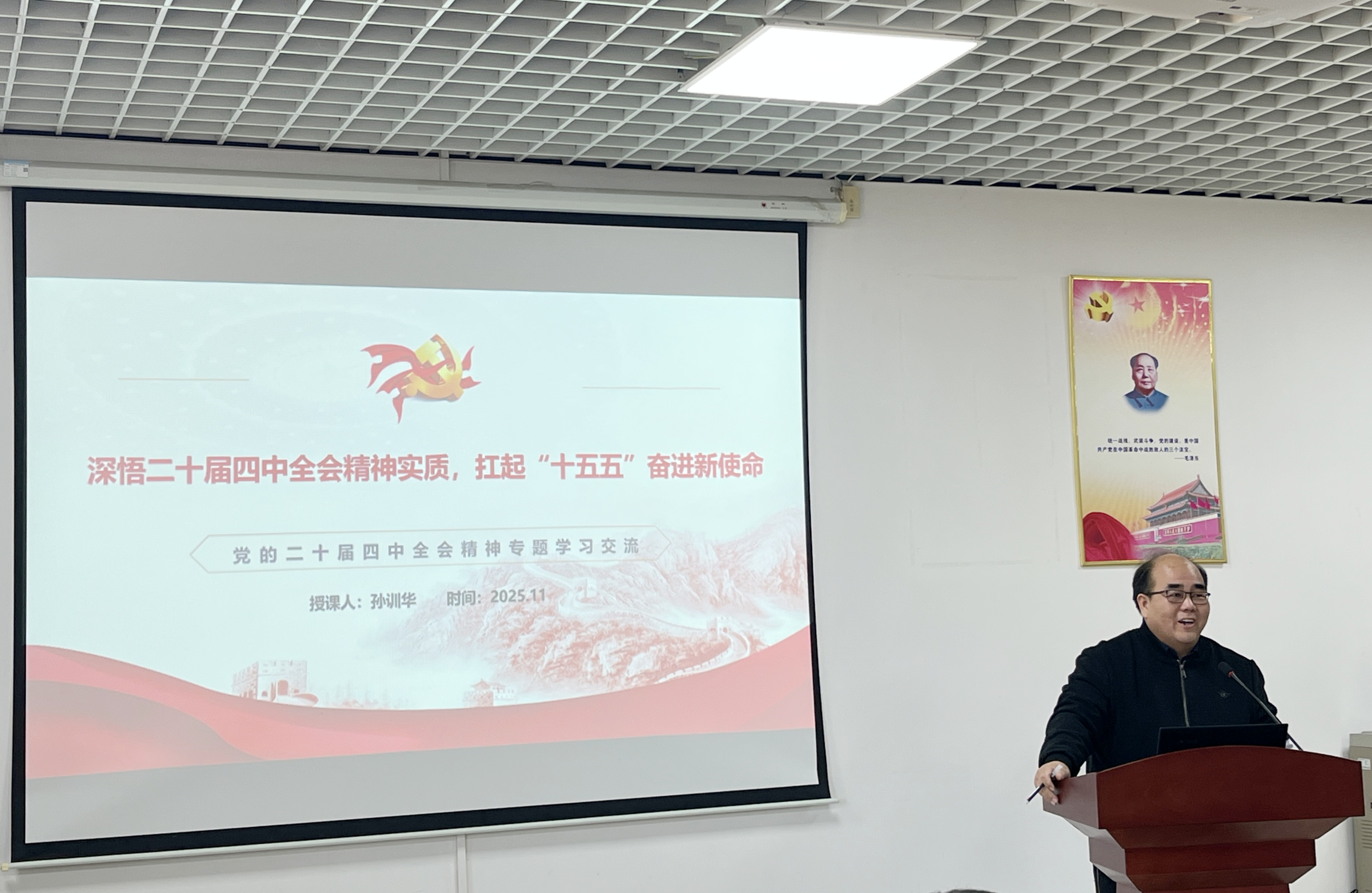 会上,全体与会人员集中观看了《中共中央召开党外人士座谈会》的视频。学校宣讲团成员、马克思主义学院教师孙训华作题为《深悟二十届四中全会精神实质,扛起“十五五”奋进新使命》的辅导报告,他围绕“十四五”发展成就回顾、“十五五”发展蓝图擘画以及统一战线学习贯彻中共二十届四中全会精神的实践路径等方面内容对全会精神作了深入系统的阐释。